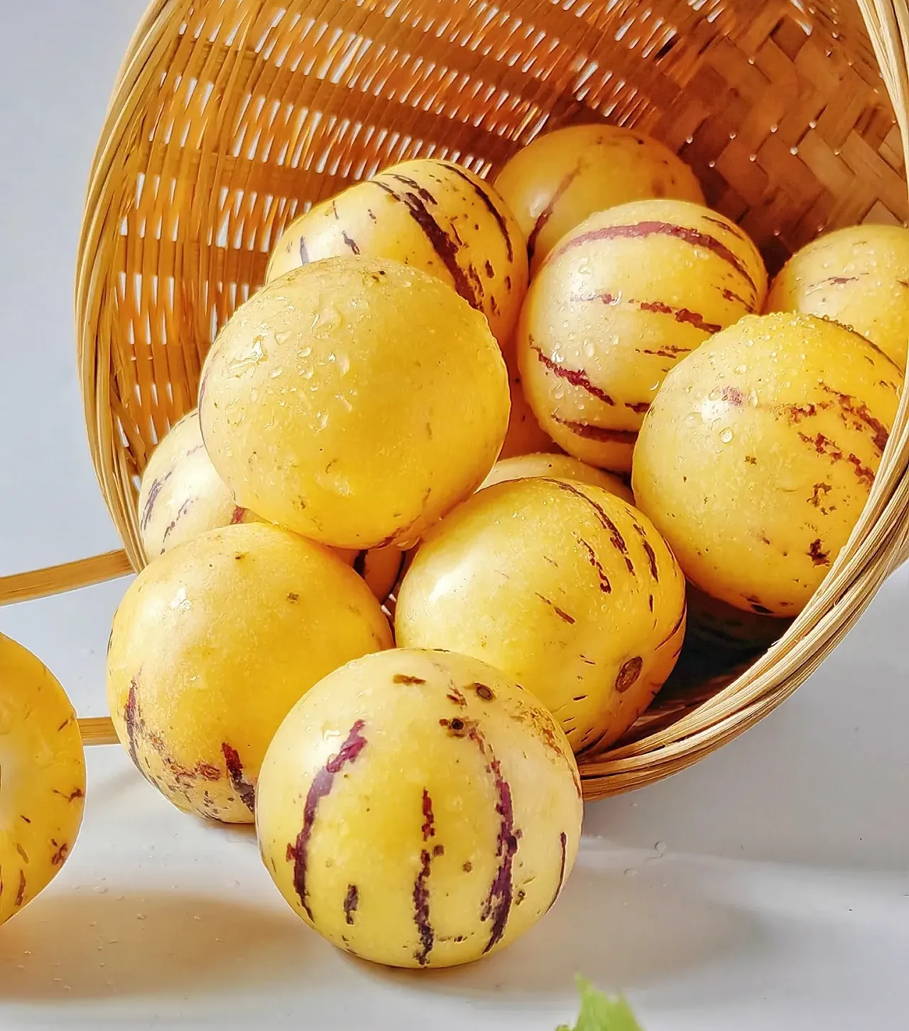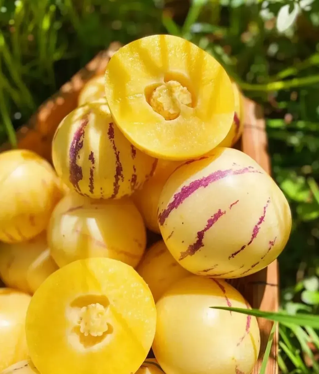 Pepino, známe tiež ako „melónový baklažán“ alebo „hruškový melón“, je preslávené svojou bohatou výživovou hodnotou a sladkou, lahodnou chuťou. Obsahuje vitamín C, minerály a antioxidanty, ktoré posilňujú imunitu 💪, podporujú trávenie a sú ideálnou voľbou pre zdravé stravovanie.
